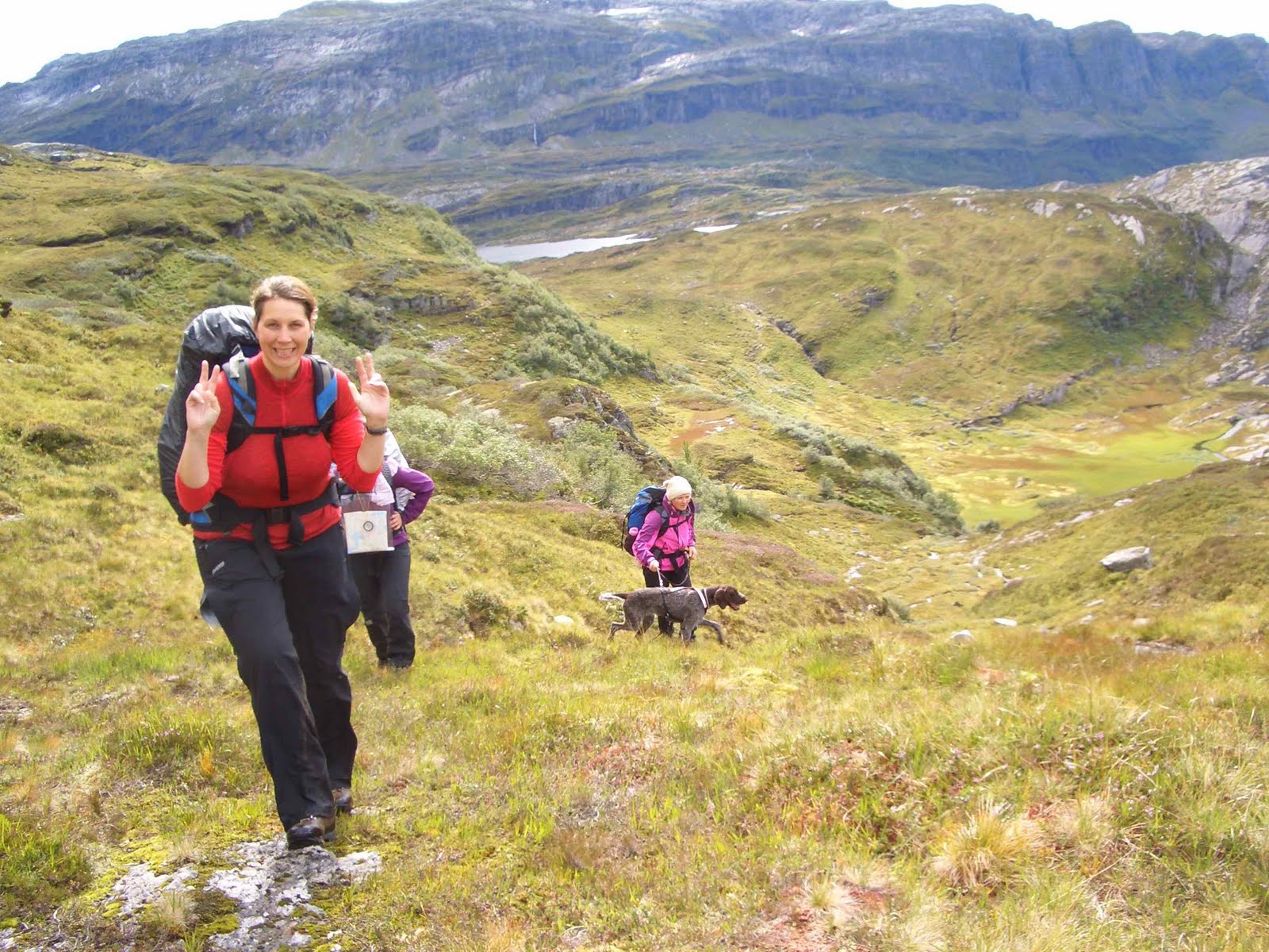 Vi ville gå på eit fjell... og hadde bestemt oss for Blåfjellet :) Ein lokal fyr vi møtte på hytta, sa at turen nok ville ta 4 timar, og det hørtes jo perfekt ut. Vi pakka sekken, 2 epler, litt nøtter og 2 flaske vatn... off we go!